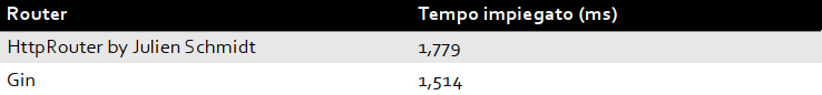 In conclusione, nonostante il router di Julien Schmidt ha guadagnato la sua fama per la sua efficienza, abbiamo dimostrato che c’è un router che riesce ad esserlo ancora di più senza dover scrivere codici più lunghi o complessi.
